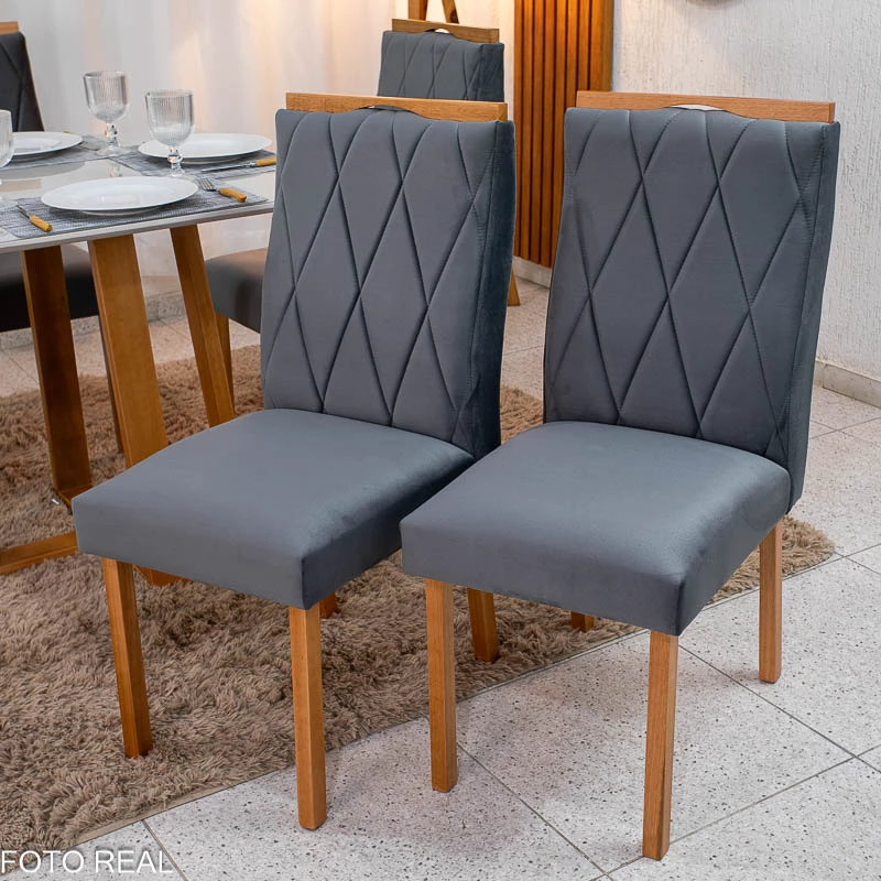 2 Cadeiras Lisboa Veludo Cinza 507 Madeira Art Assento – Entregue Montada