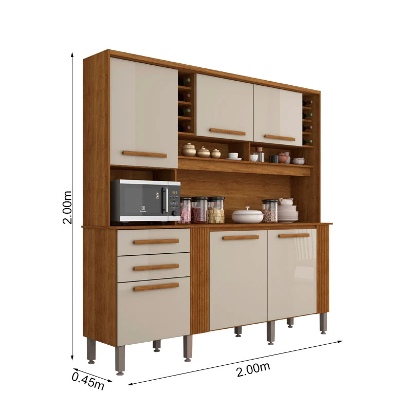 Armário Cozinha Catar Larg. 2.00m Cinamomo/Off 6 Portas 2 Gavetas – Sallêto