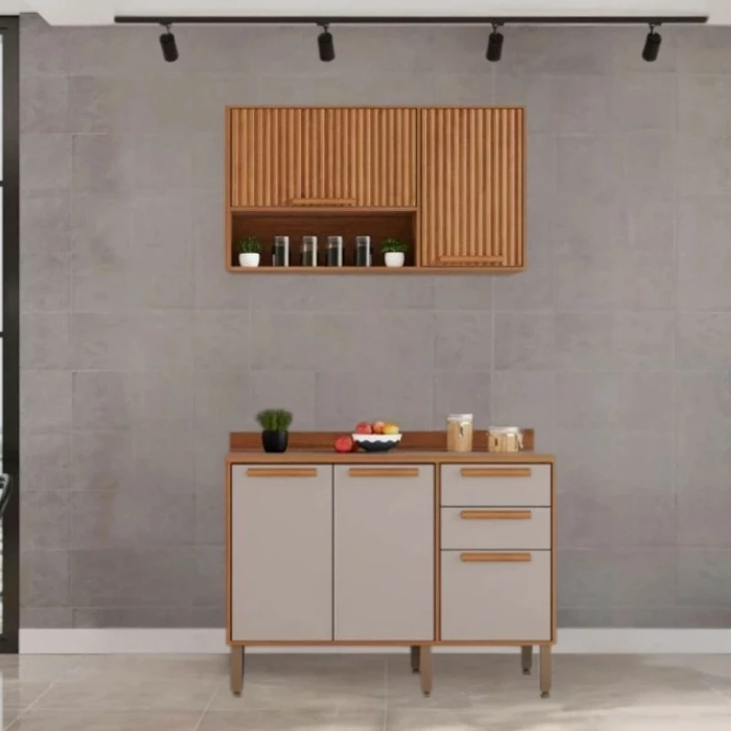 Balcão Flórida 3 Portas 2 Gavetas Larg. 1.20m + Armário Aéreo Florida 2 Portas Larg. 1.20m Ripado Cinamomo/Off – Sallêto