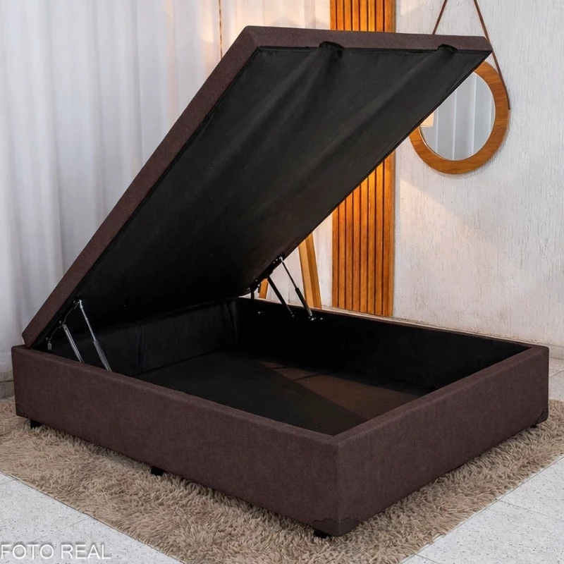Base Box Baú Casal Prime Confort Sued Marrom Blindado 138x188x45 – Issacar