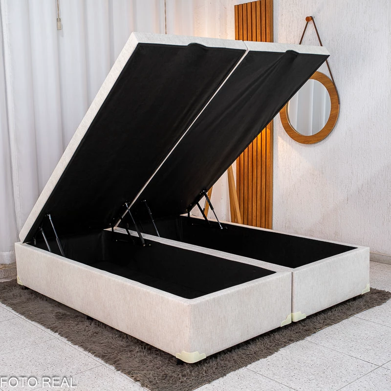 Box Baú Queen Bipartido Prime Confort 158x198x45 Korino Linho Palha Blindado – Issacar