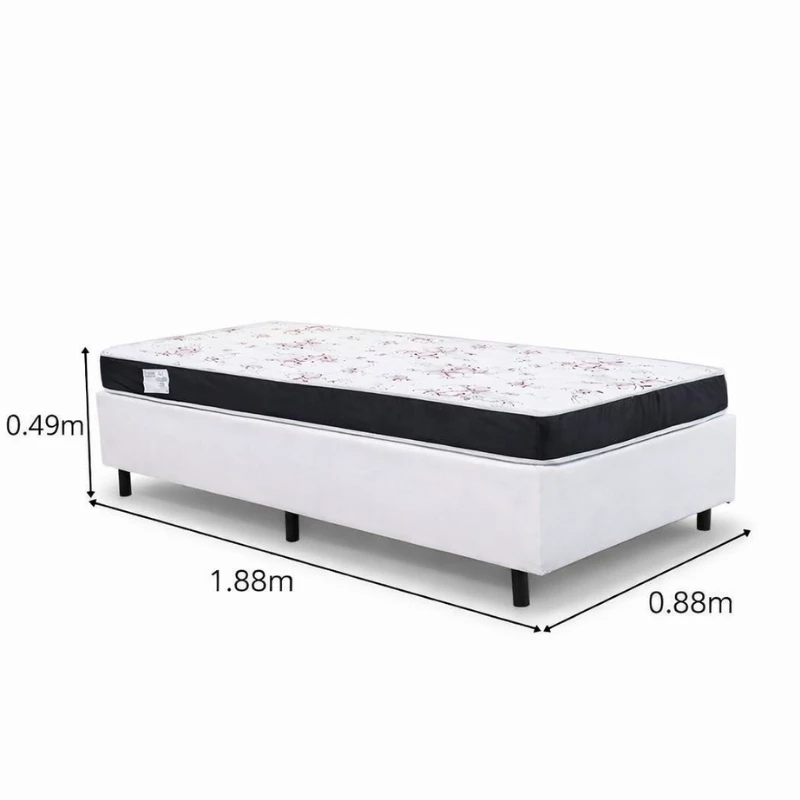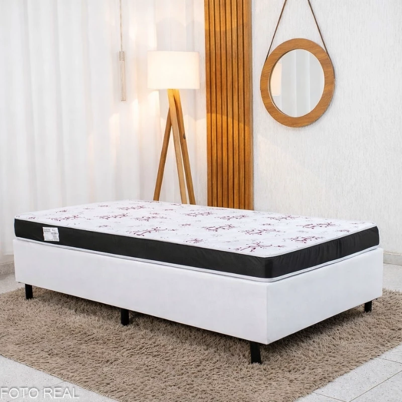 Box Solteiro Korino Branca Ortobel + Colchão Solteiro Soffie Lotus 88x188x49 D20 Borda Preta Det. Vermelho – Nosso Sonho