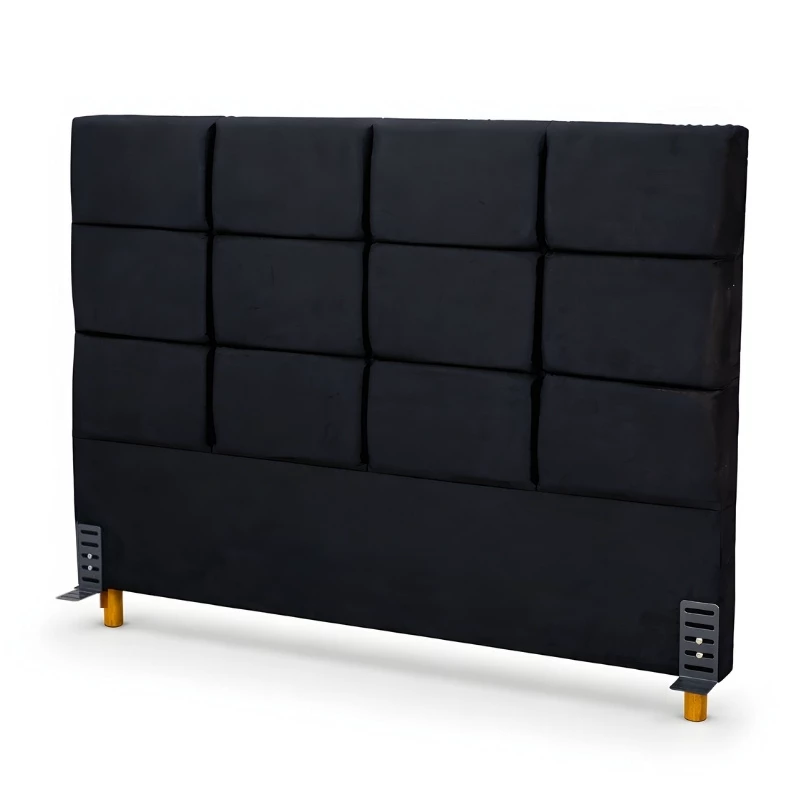 Cabeceira Casal Itália Veludo Preto Larg. 1.40m