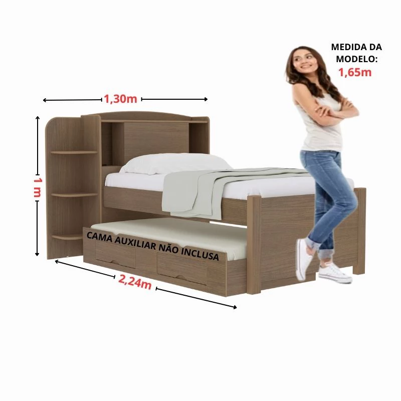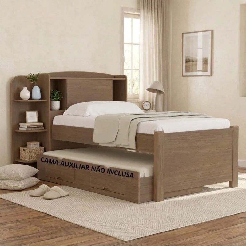 – Prateleira laterais que podem ser usadas para colocar livros, objetos e enfeites. Além disso pode ser montada em ambos os lados da cabeceira.