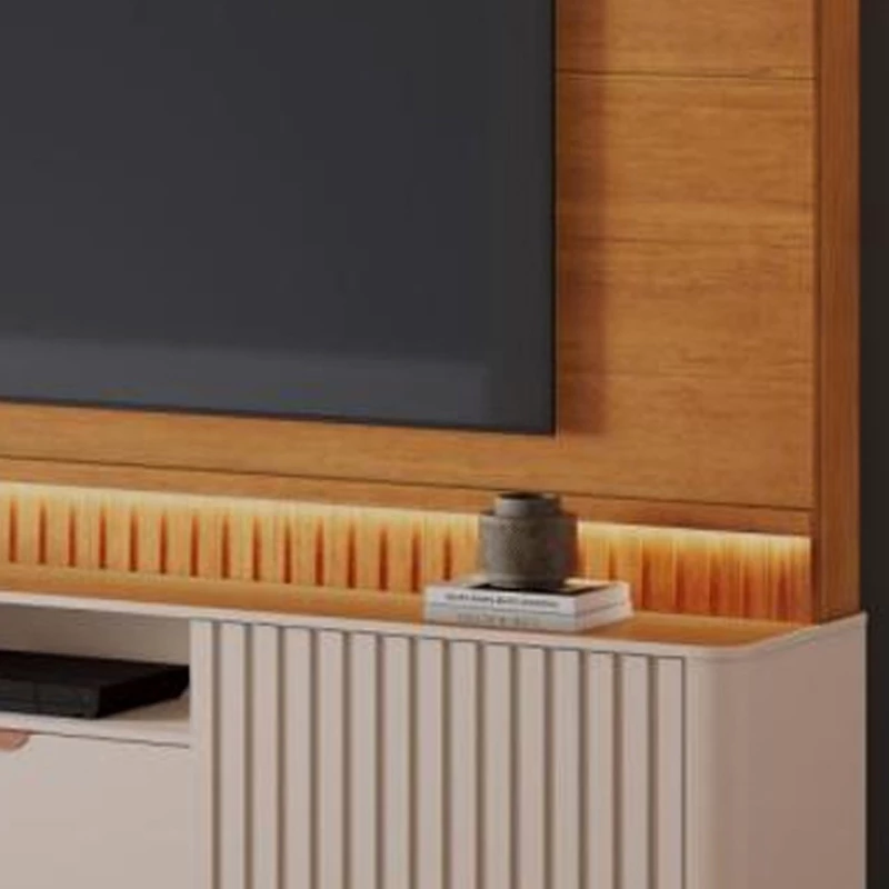 Home Atena Candian Larg. 2.10m Cinamomo/Off White C/Detalhe Ripado e Luminárias em LED – JCM