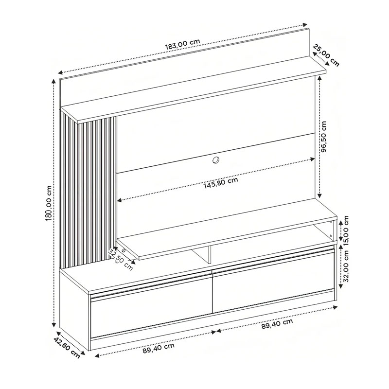 Home NT 1295 Larg. 1.83m Freijó/Off C/ Detalhe Ripado para TV até 60″ – Notável