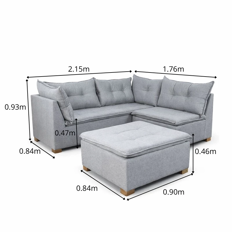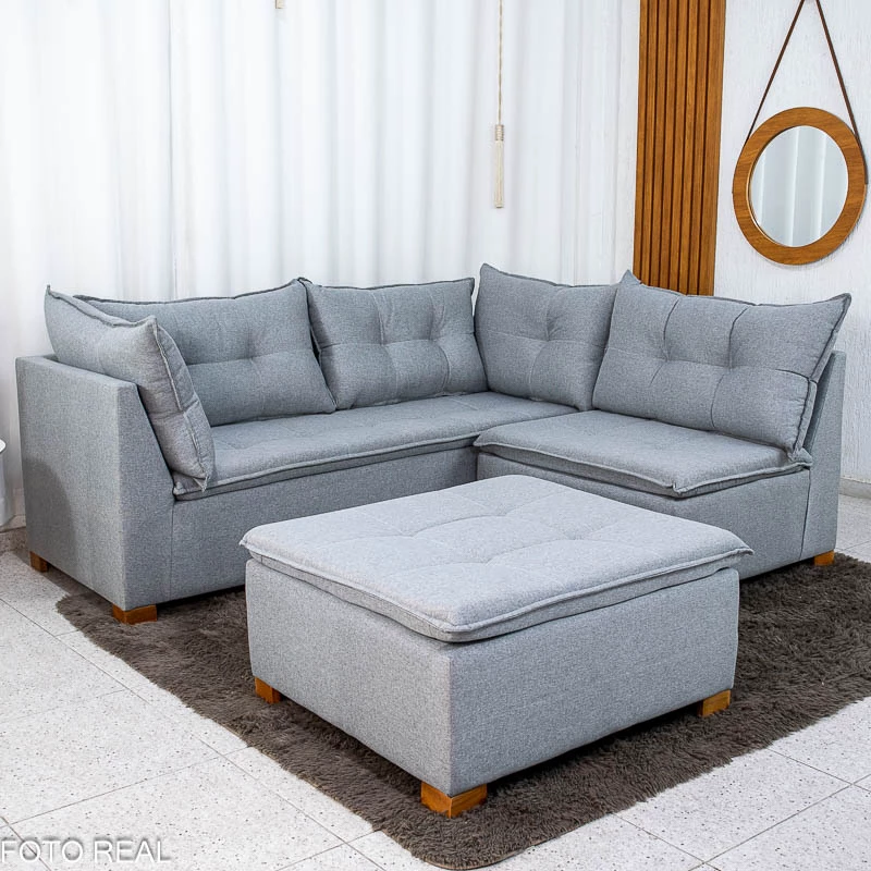 Sofá Canto com Puff Jaguar Linho Cinza 2016