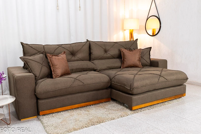 Sofá Retrátil Reclinável Chicago 2.50m Veludo Marrom A17 – Molas Ensacadas Medidas: – Largura: 2.50m – Altura: 1.10m – Assento fechado: 1.25m – Assento aberto: 1.80m – Altura do assento até o chão: 0.52m – Largura dos braços: 0.25m – Sofá retrátil para até 5 pessoas – Passa em portas de 0.75m Assento: – Tipo: Retrátil com corrediças em tubo de ferro – Pillow Top: 25 cm de espessura – Espuma: D28 Soft de alta densidade – Molejo: Molas ensacadas Pocket individuais – Sustentação: Percintas elásticas de alta resistência – Rodízios: Rodinhas siliconadas que facilitam o deslizamento Encosto: – Tipo de encosto: Reclinável com várias posições – Enchimento: Fibra de poliéster siliconado de alto conforto – Sistema de inclinação: Catraca de ferro blindado Braços: – Levemente arredondados, proporcionando um visual moderno e aconchegante. Estrutura: – Tipo de madeira: Eucalipto de reflorestamento Revestimento: – Tecido: Veludo. Peso indicado: – Recomendado até 120 kg por pessoa Bônus: – Acompanha almofadas decorativas Aviso importante: Informamos que é normal haver uma abertura entre os módulos dos sofás retráteis. Essa abertura é necessária para evitar atrito entre os módulos durante o movimento de abrir e fechar, prevenindo o desgaste do tecido.
