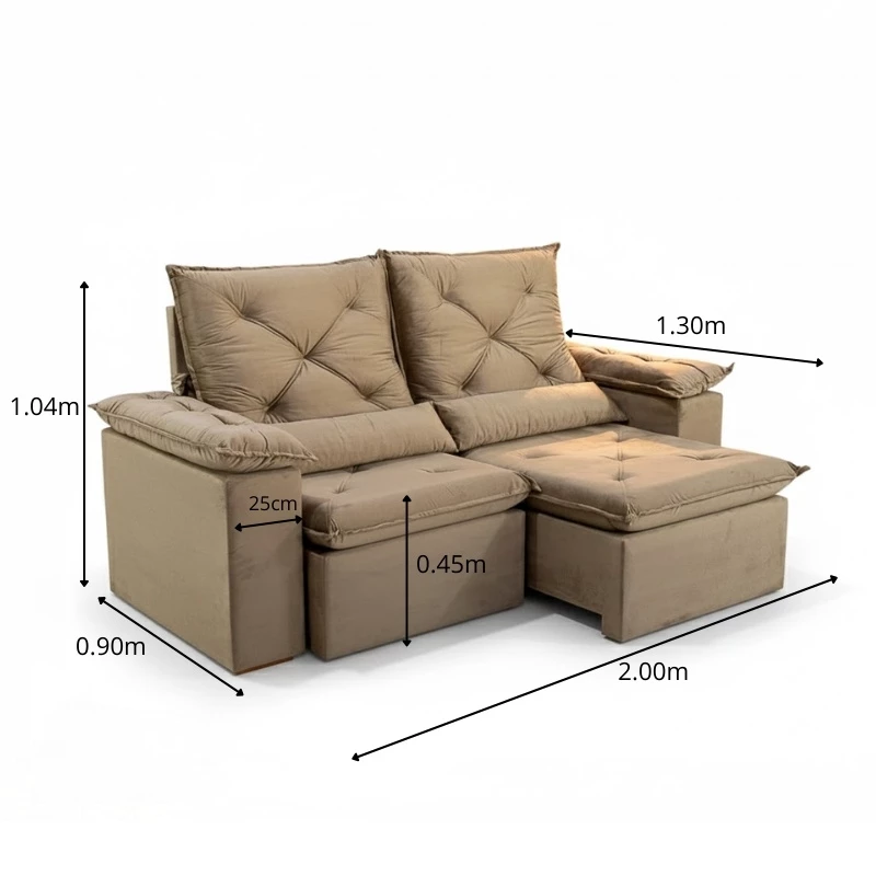 Sofá Retrátil Reclinável City 2.00m Veludo Bege – Sem Caixa