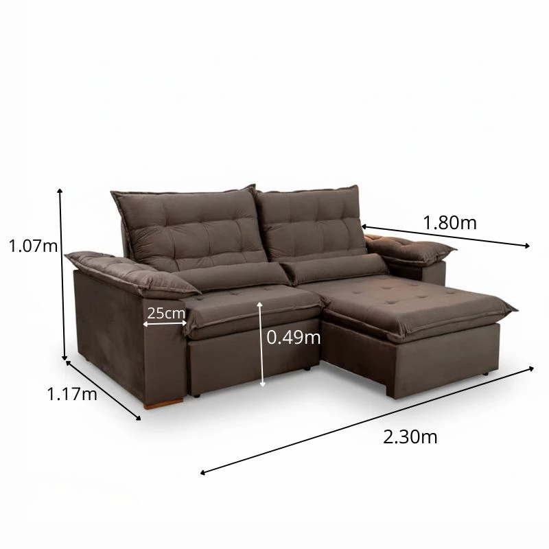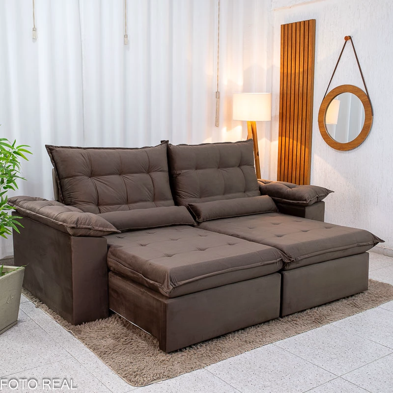 Sofá Retrátil Reclinável Emanuelly 2.30m Veludo Marrom