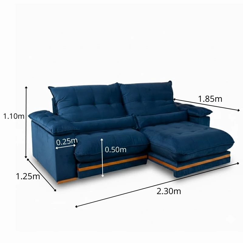Sofá Retrátil Reclinável Ibis 2.30m Veludo Azul 800 – D33 e Molas Ensacadas