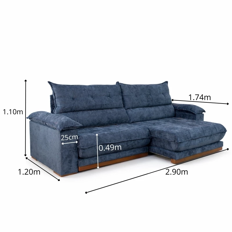 Sofá Retrátil Reclinável Itauna 2.90m Chenille Azul 575 – Molas Ensacadas